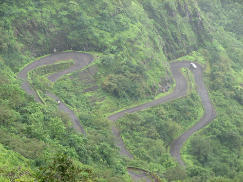 वळणावळणाची वाट असलेला वरंधा घाट आणि खाली गाव
