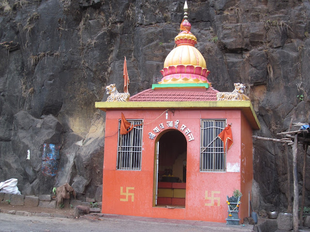 वाघजाई मंदिराकडून भोरच्या दिशेने निघाल्यावर साधारण २०० फुटावर रस्त्याच्या उजवीकडे एक मळलेली पायवाट वर डोंगरावर जाताना दिसते. या वाटेने ७-८ मिनिटे वर चढल्यावर वाटेला उजवीकडे व डावीकडे असे दोन फाटे फुटतात.